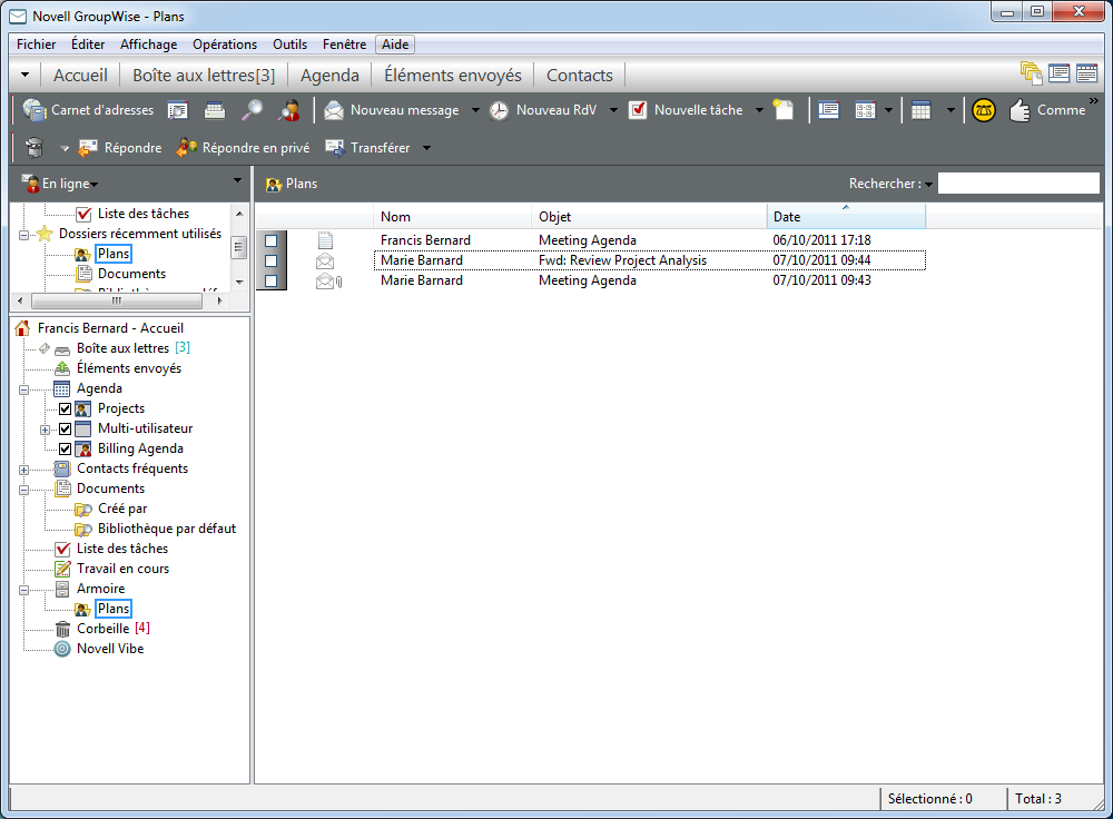 Vous ne pouvez pas renommer les dossiers Agenda, Documents, Boîte aux lettres, Éléments envoyés, Liste des tâches, Contacts, Armoire, Travail en cours et Corbeille.