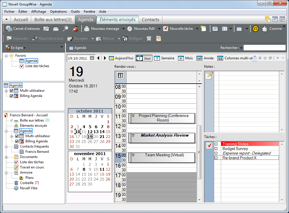 Il existe plusieurs moyens différents pour afficher votre agenda GroupWise, d'une vue par jour à une vue par mois. De même, vous pouvez afficher votre agenda et celui d'un de vos mandataires simultanément.