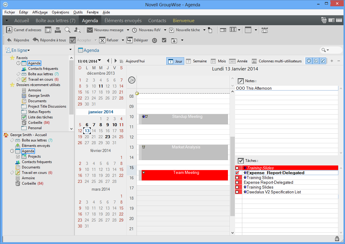 Il existe plusieurs moyens différents pour afficher votre agenda GroupWise, d'une vue par jour à une vue par année. De même, vous pouvez afficher votre agenda et celui d'un de vos mandataires simultanément.