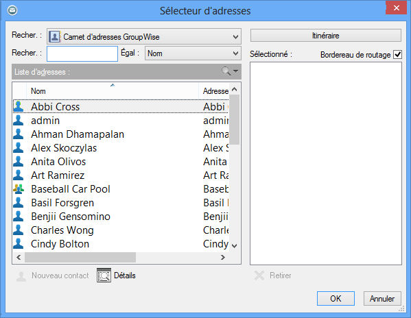 Le carnet d'adresses et l'achèvement de noms vous aident à rechercher rapidement et facilement les contacts dont vous avez besoin lorsque vous envoyez un message électronique.