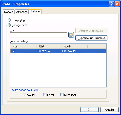 Pour choisir des noms d'utilisateurs dans une liste, dans la barre d'outils, cliquez sur , double-cliquez sur chaque utilisateur, puis cliquez sur .
