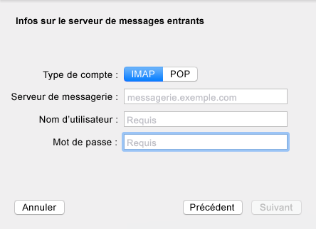 Avant de configurer l'application Mail de Mac, assurez-vous d'avoir reçu les informations IMAP et SMTP de votre administrateur GroupWise. Elles permettent d'établir les connexions pour le courrier entrant et sortant de l'application Mail.
