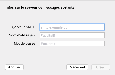 Spécifiez le serveur SMTP, votre nom d'utilisateur et votre mot de passe.