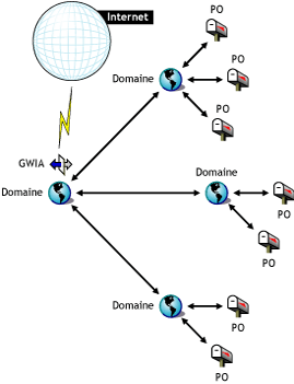 Connexion à d’autres systèmes GroupWise via Internet : L’adressage direct permet de se connecter à d’autres systèmes GroupWise n’importe où sur Internet et d’accéder à toutes les fonctionnalités de GroupWise. Internet devient pour GroupWise un simple moyen de transport qui permet d’acheminer les messages.