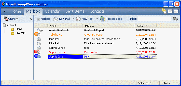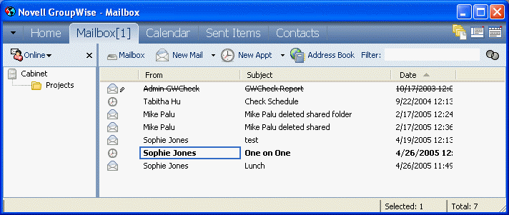Figure 3-9 Courrier d'un utilisateur GroupWise