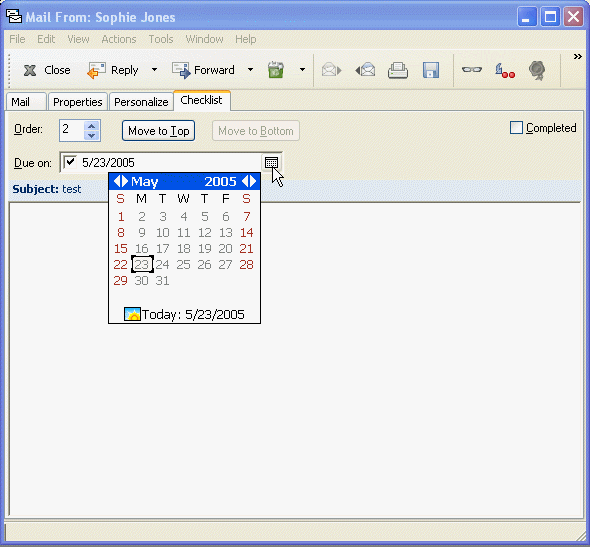 Ouvrez un élément dans le dossier Liste de contrôle.