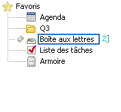 Favoris : s'affiche lorsque vous ne vous trouvez pas dans le dossier Agenda, dans le dossier Contacts, dans le dossier Documents ou dans aucun des dossiers NNTP. La liste des dossiers simple des Favoris permet de copier des dossiers dans la liste des dossiers pour y accéder plus rapidement.