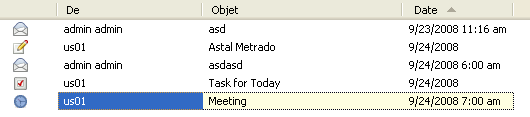 Un dossier partagé se comporte comme n'importe quel dossier de votre armoire, si ce n'est que les autres utilisateurs y ont accès et qu'il s'affiche également dans leur armoire. Vous pouvez créer des dossiers partagés ou partager des dossiers personnels existants de votre dossier Armoire. Vous choisissez les personnes avec lesquelles vous souhaitez partager le dossier et les droits que vous souhaitez accorder à chaque utilisateur. Les utilisateurs peuvent ensuite publier des messages dans le dossier partagé, y faire glisser des éléments existants et créer des suivis de discussion. Vous ne pouvez pas partager les dossiers système Agenda, Documents, Boîte aux lettres, Éléments envoyés, Liste des tâches, Contacts, Armoire, Travail en cours, Courrier indésirable et Corbeille. Le contenu d'un dossier partagé a généralement l'apparence suivante :