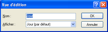 La boîte de dialogue Propriétés de la vue Agenda permet de modifier la vue utilisée pour afficher vos agendas Jour, Semaine, Mois, Année et Multi-utilisateurs.