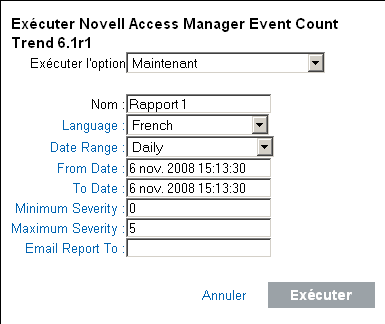 Définissez les événements de gravité minimale à inclure dans le rapport.