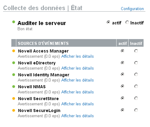 Dans la section , les administrateurs peuvent activer la collecte de données au niveau de l'application. Ces paramètres peuvent affecter la collecte de données pour plusieurs serveurs (par exemple, plusieurs instances eDirectory).
