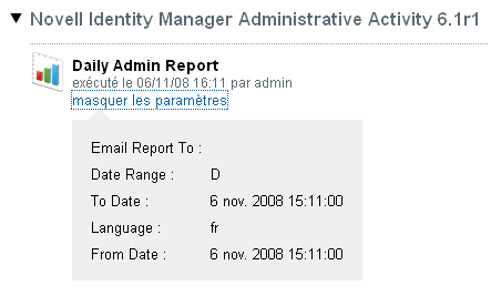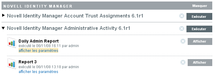 Les utilisateurs Identity Audit peuvent afficher des rapports dans l'application Identity Audit. Les autres utilisateurs peuvent recevoir les fichiers de rapportau format PDF par courrier électronique.
