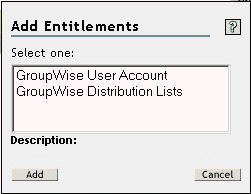 Ainsi, sur la capture suivante, deux sortes de droits sont proposés par un pilote GroupWise, le premier dans la liste étant un compte utilisateur GroupWise.