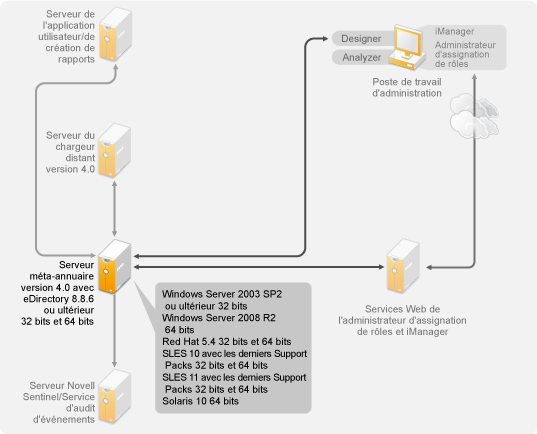 Le serveur méta-annuaire s'exécute en mode 32 ou 64 bits. Novell conseille d'appliquer les derniers correctifs pour les systèmes d'exploitation en passant par le système de mises à jour automatisées du fabricant avant d'installer Identity Manager. |