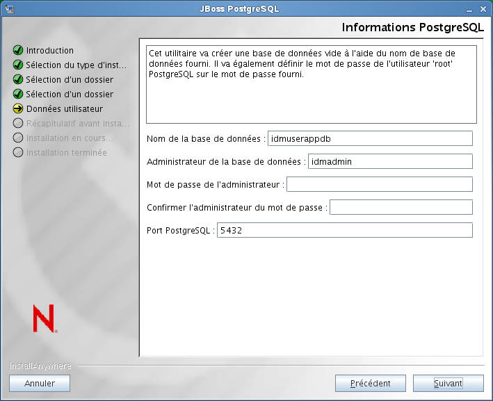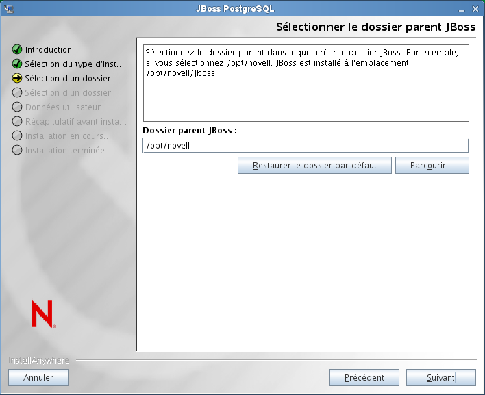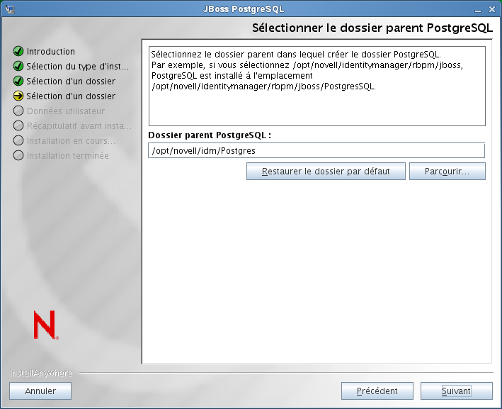 L'utilitaire JBossPostgreSQL installe le serveur d'applications JBoss et la base de données PostgreSQL sur votre système. Il ne prend pas en charge le mode console et requiert un environnement d'interface utilisateur graphique.