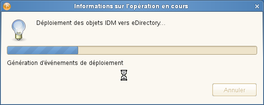 Designer affiche une fenêtre de progression montrant les objets en cours de déploiement :
