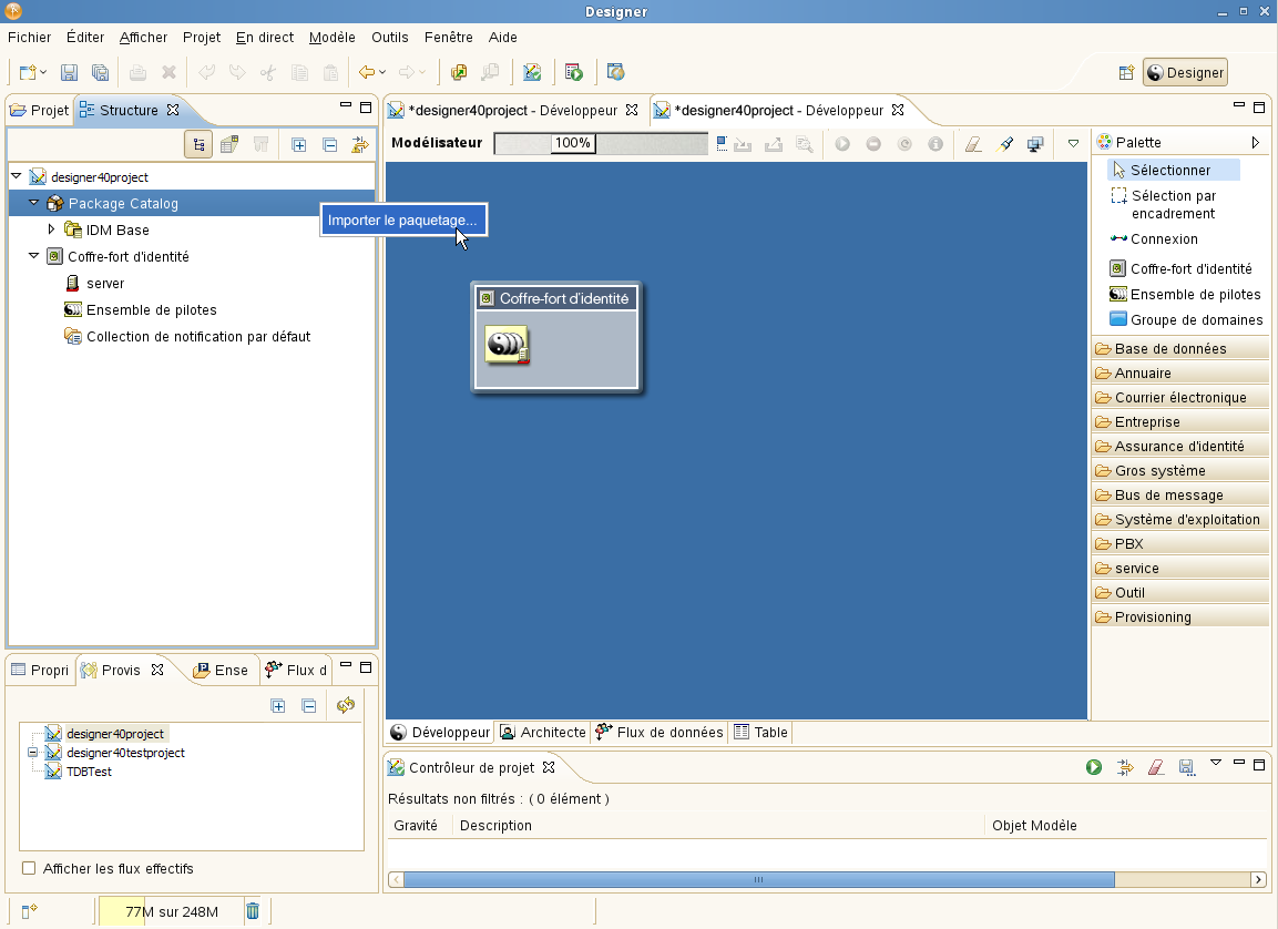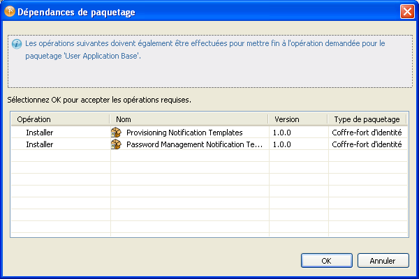 Pour installer les paquetages après avoir créé un nouveau projet Identity Manager :