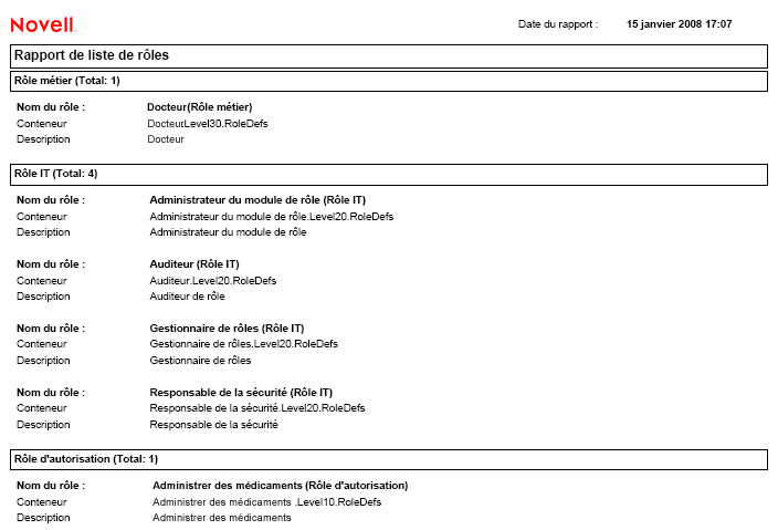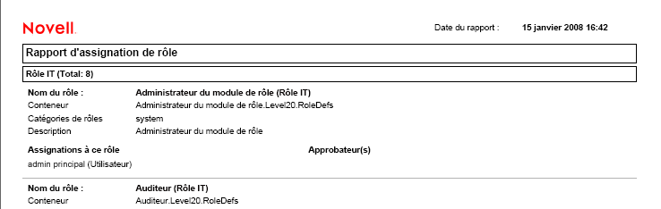 Figure 19-2 Exemple de rapport d'assignations de rôle