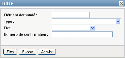 Pour limiter la recherche aux requêtes ayant un numéro de confirmation particulier, saisissez l'ID dans le champ .