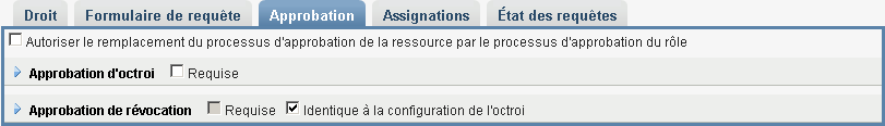 Spécifiez si le processus d'approbation de la ressource peut être remplacé par celui d'un rôle. Pour ce faire, activez ou désactivez la case à cocher .