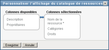L'application utilisateur affiche la liste des colonnes actuellement sélectionnées pour affichage ainsi qu'une liste de colonnes supplémentaires disponibles pour sélection.