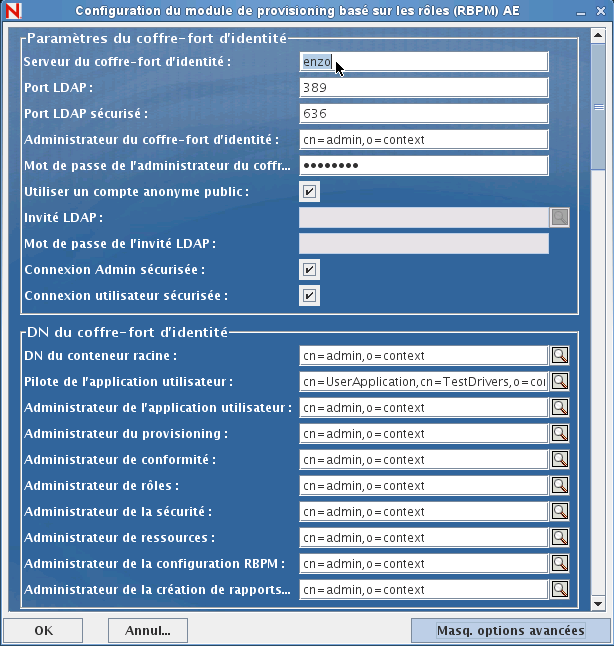 Le programme d'installation utilisera la valeur du champ DN du conteneur racine et l'appliquera aux valeurs suivantes :