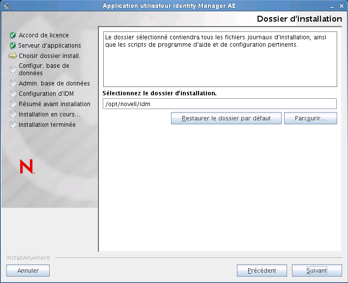 Identity_Manager_User_Application_InstallLog.log contient les résultats des tâches d'installation de base.