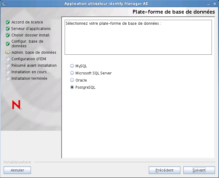 Assurez-vous d'utiliser la bonne version du JRE Sun (comme décrit à la Section 1.3, Configuration système requise) avant de lancer le programme d'installation de l'application utilisateur. Si vous avez utilisé l'utilitaire JBossPostgreSQL fourni avec le module de provisioning basé sur les rôles pour installer le JRE, vous pouvez utiliser la commande suivante pour lancer le programme d'installation.