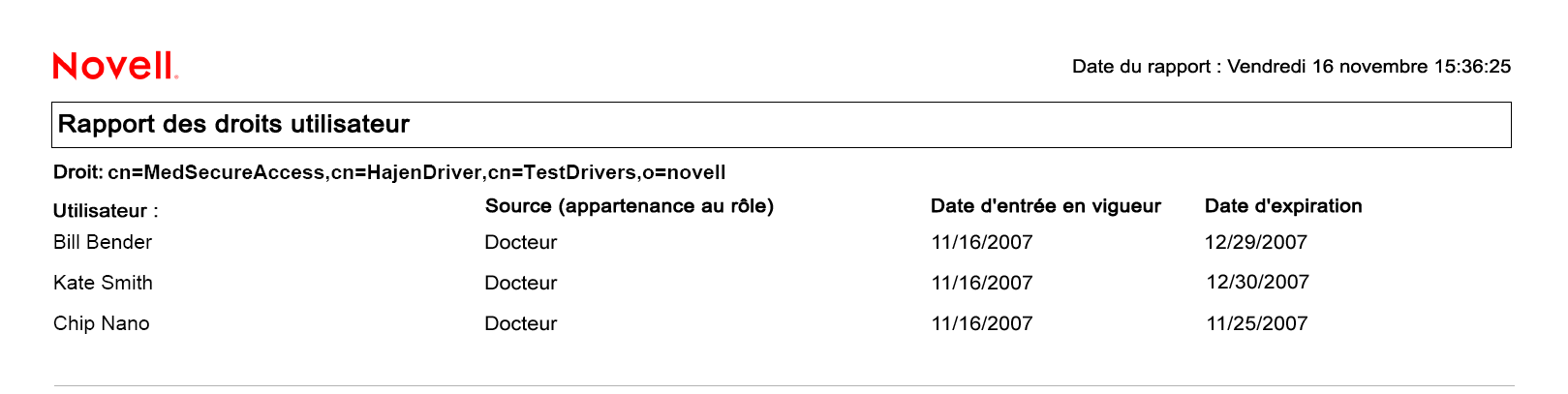 Figure 19-5 Exemple de rapport de droits utilisateur : détails des utilisateurs pour chaque droit