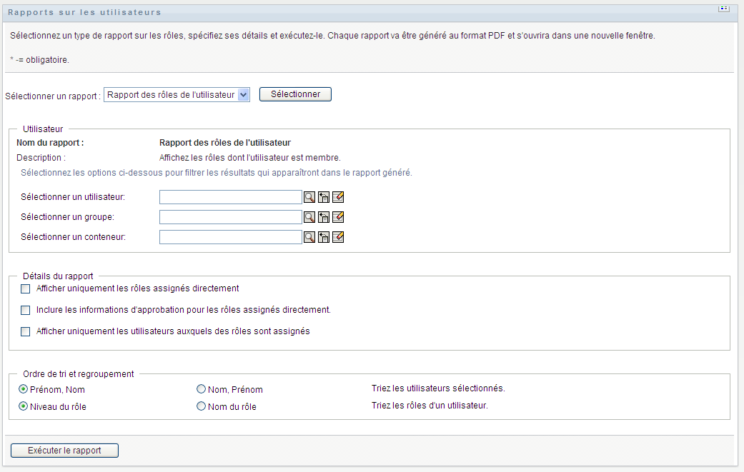 Le rapport des rôles utilisateur affiche les éléments suivants :