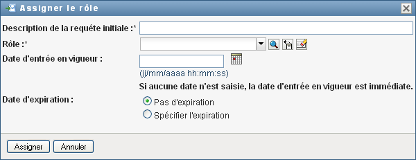2. Renseignez les champs de la boîte de dialogue Assigner le rôle :