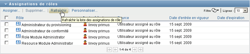 10.3.3 Rafraîchissement de la liste des assignations de rôles