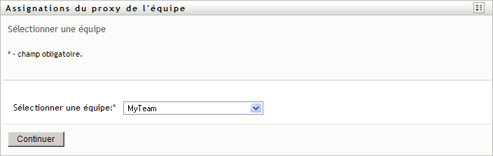 Si vous êtes gestionnaire d'équipe, vous pouvez être autorisé à définir des proxys pour les membres de votre équipe. Pour définir des proxys, le gestionnaire d'équipe doit avoir l'autorisation Configurer le proxy dans la définition de l'équipe.