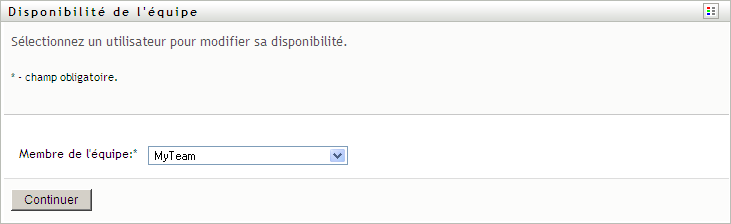 La liste des équipes inclut celles pour lesquelles les gestionnaires d'équipe sont autorisés à définir la disponibilité (spécifiée dans la définition de l'équipe), ainsi que celles pour lesquelles la possibilité de définir la disponibilité a été désactivée. Si la définition de l'équipe n'autorise pas les gestionnaires d'équipe à définir la disponibilité, le gestionnaire peut néanmoins afficher les paramètres de disponibilité définis pour les membres de l'équipe par l'administrateur ou par le gestionnaire d'une autre équipe auxquels sont associés ces utilisateurs. Cependant, le gestionnaire d'équipe ne peut ni modifier ni supprimer ces paramètres, en afficher les détails, ou créer de nouvelles assignations de disponibilité.