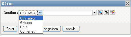 Pour sélectionner un utilisateur, un groupe, un conteneur, un rôle ou un membre de l'équipe :