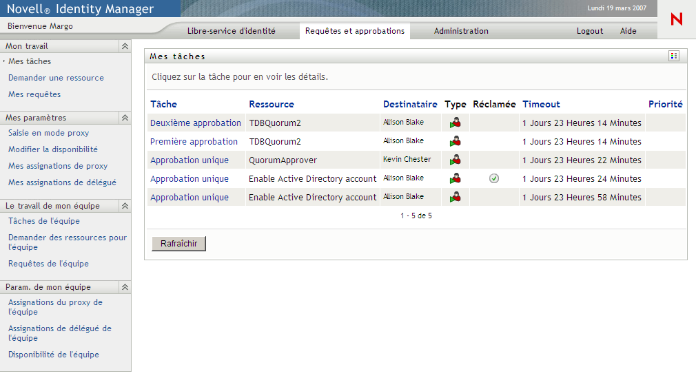Les opérations et ne s'affichent que si vous êtes un gestionnaire d'équipe.
