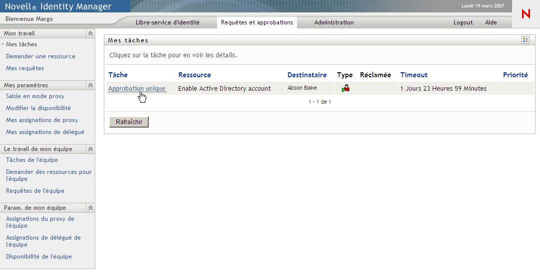 REMARQUE :vous devez avoir l'autorité nécessaire pour réassigner des tâches. Pour réassigner une tâche, vous devez être un administrateur d'application de provisioning ou un gestionnaire d'équipe ayant reçu cette autorisation dans la définition des droits de l'équipe.
