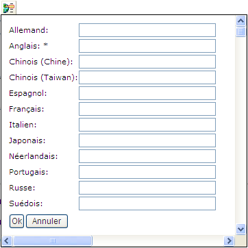 Localiser. Affiche une boîte de dialogue dans laquelle vous pouvez saisir le texte correspondant à un nom de champ ou à une description dans toutes les langues prises en charge par l'application utilisateur.