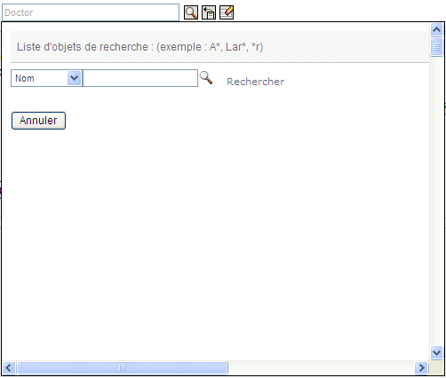 Sélectionnez l'élément de votre choix dans la liste. La page de recherche se ferme et les données associées à votre sélection sont insérées dans la page courante.