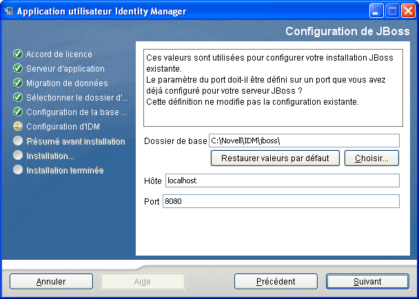 Vous êtes invité à indiquer l'emplacement d'installation du serveur d'applications JBoss.