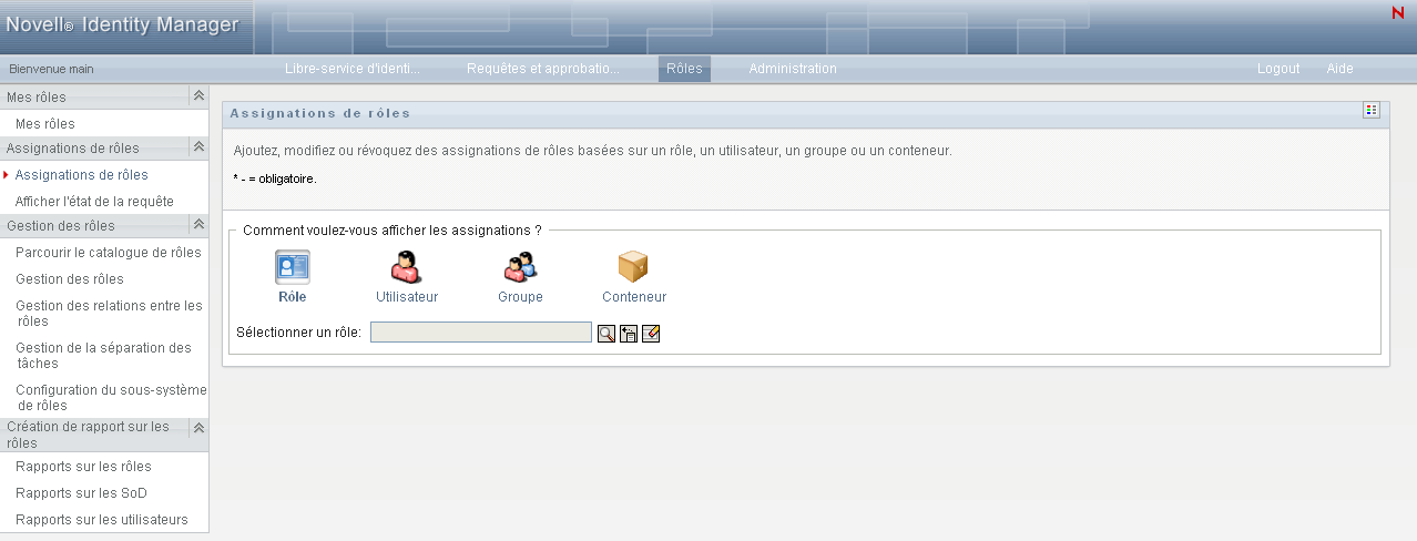 Les opérations correspondant à la s'affichent uniquement si vous êtes administrateur du module de rôles ou gestionnaire de rôles. L'opération dans s'affiche uniquement si vous êtes administrateur du module de rôles ou responsable de sécurité. Les opérations s'affichent uniquement si vous êtes administrateur du module de rôles ou auditeur de rôles.