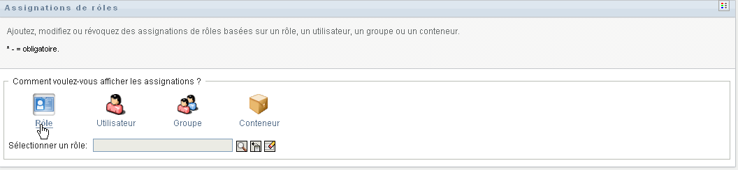 Les gestionnaires de rôles peuvent demander l'assignation d'utilisateurs, de groupes et de conteneurs aux rôles pour lesquels ils possèdent des droits Parcourir.