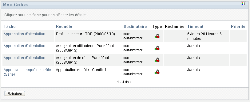 Si le type d'approbation est rôle, la tâche a été assignée à plusieurs utilisateurs au sein d'un rôle, mais seul l'un d'eux doit la réclamer et l'approuver.