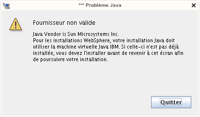 Lancez le programme d'installation à partir de l'environnement Java d'IBM, comme décrit ci-après :