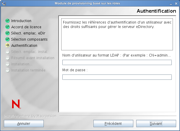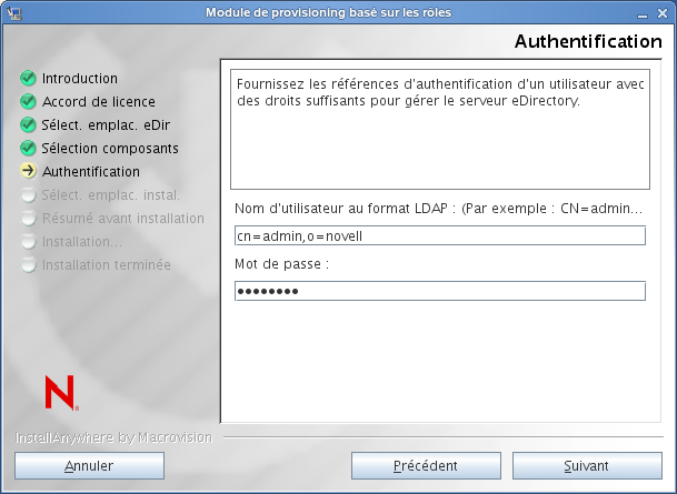 Indiquez le nom d'utilisateur au format LDAP et saisissez le mot de passe :