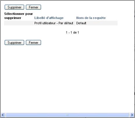 Lorsque vous cliquez sur le bouton , l'application utilisateur affiche une fenêtre de confirmation avant de supprimer la requête enregistrée.