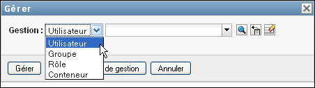 Pour sélectionner un utilisateur, un groupe, un conteneur, un rôle ou un membre de l'équipe :