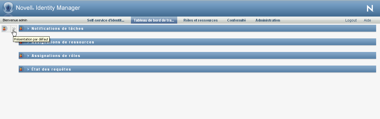 La section Profil utilisateur masque les détails de l'entité actuellement sélectionnée pour vous donner plus d'espace pour travailler avec les sections Notifications de tâches, Assignations de ressources, Assignations de rôles et État des requêtes de la page.