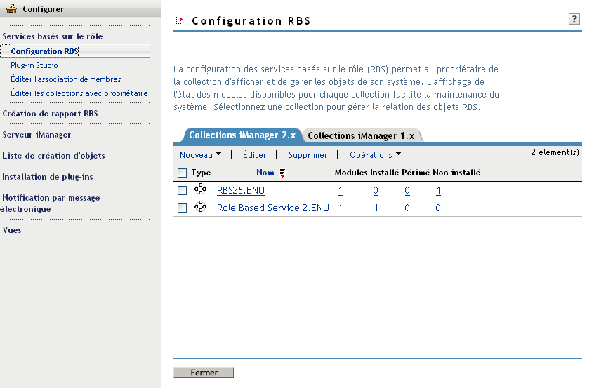 Collection iManager 2.x : affiche les collections RBS actuelles.