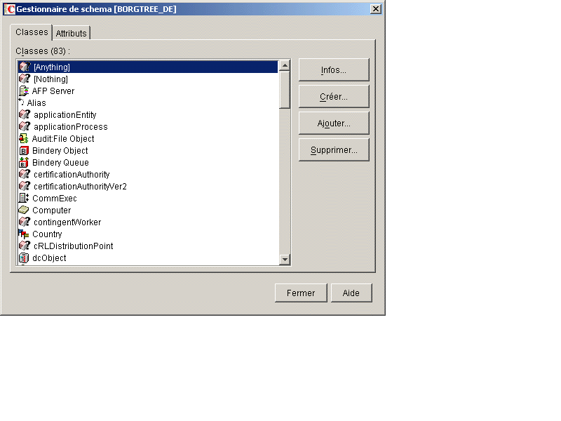 Each class has a class name, an inheritance class (unless it is at the top of the class hierarchy), class flags, and a group of attributes. Classes are named like directory objects (User, Printer, Queue, Server, and so on), yet they are just structure, no content.